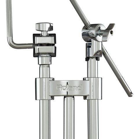 DTS321は、2本のタムとシンバルのコンビネーション・スタンドDCS-30と、シンバル・ブーム・スタンドDBS-30を1つにまとめたV-Drumsスタンド・セットです。クローム仕上げのダブル・レッグ・スタンドと大口径のパイプが、演奏時に高い安定感をもたらします。