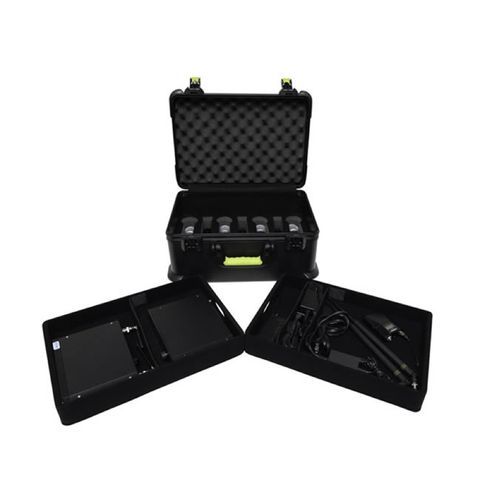 レシーバー、ベルトパックトランスミッター、アクセサリーの収納が可能で、最大7本のワイヤレスマイクに対応。