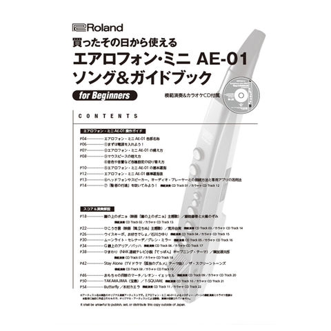 ROLAND ローランド AE-SG04 エアロフォンミニ AE-01 ソング&ガイドブック カラオケCD付き Aerophone AE-01 Song & Guidebook