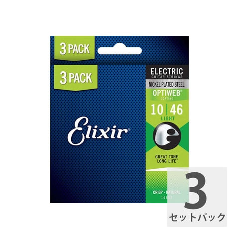 【3セットパック】 エリクサー エレキ弦 10-46 オプティウェブ ELIXIR 16552 19052 OPTIWEB Light 10-46 エレキギター弦 ボーナスパック