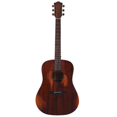 マホガニーは、暖かくふくよかなサウンドをもち、ドレッドノートシェイプがよりふくよかな低音と深い響きを高め、暖かでふくよかで耳障りの良い心地いいサウンドを奏でます。また、単板トップの時間とともに育てる楽しみも味わえるモデルです。