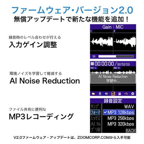 ※ファームウェアは株式会社ズームのサポートページよりダウンロードが可能です。