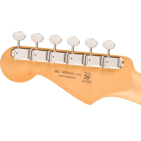 Player II Stratocasterは、時代を超越したフェンダーの魅力を放ちながらも、その中身は現代プレイヤー向けにデザインされています。Modern "C"シェイプのネックバックにはシルキーなサテンウレタンフィニッシュが施されており、丁寧にロールオフされた指板エッジと22本のミディアムジャンボフレットを採用した9.5インチラジアスのスラブローズウッドまたはメイプル指板が、ネック全長にわたり快適なプレイアビリティを提供します。