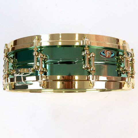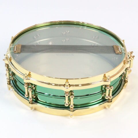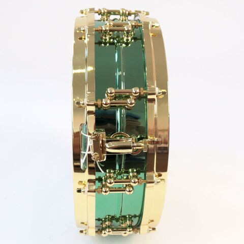 ブラスシェル(グリーンラッカー仕上げ)、ブラス・ダイキャストフープ、ブラス・チューブラグ(セパレート仕様)、10テンション