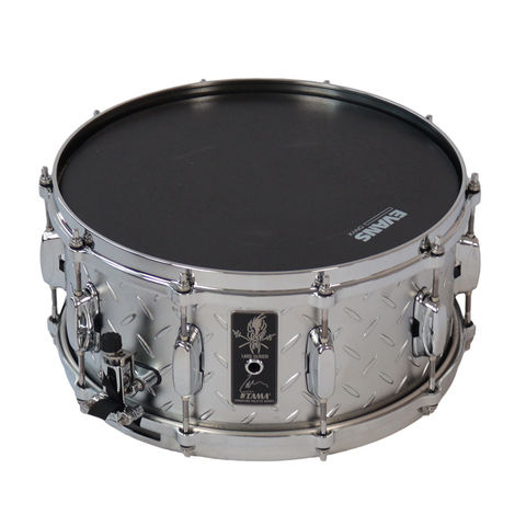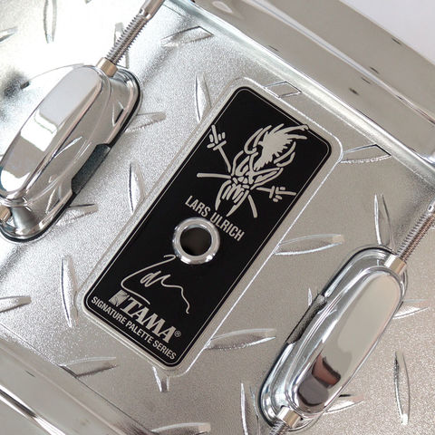 厚さ3mmのスティールシェルに"Diamond Plate"と呼ばれる斬新な模様をあしらったこのスネアドラムは、ワールドツアーのステージでも彼がメインスネアとして使用しており、彼のプレイスタイルを象徴する迫力あるルックス、パワフルなサウンドが特徴です。
