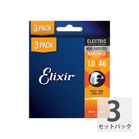 【3セットパック】 ELIXIR 16542 12052 BonusPack (2+1FREE) NANOWEB Light 10-46 エレキギター弦 3セットボーナスパック