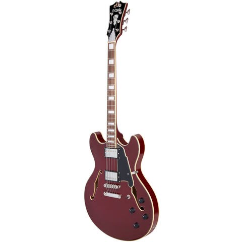 Premier DC Burnt Redは、センターブロック構造をもつ16インチ(406.4mm)幅、1.75インチ(44.45mm)厚のダブル・カッタウェイ・セミホロー・モデルです。