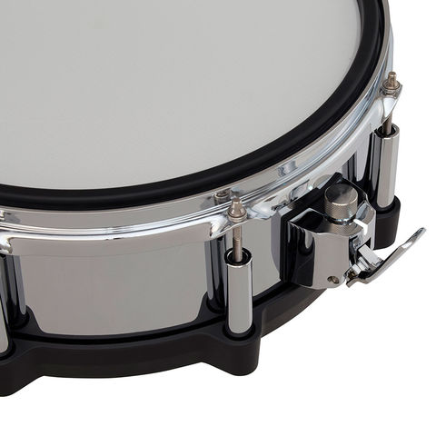 新設計のパッドは、アコースティック・スネアのように、フランジ・フープの内側にラバー・フープをセットし、より自然なデザインを実現。またレバーを操作することで、スネア・ワイヤーのON/OFFを切り替えるストレイナーを搭載。ストレイナー・ノブを回してワイヤーの張り具合を変えるといった調整も可能です。さらにノブは、プッシュ機構も備えており、音源モジュールのアサイン可能な機能を割り当てることもできます。