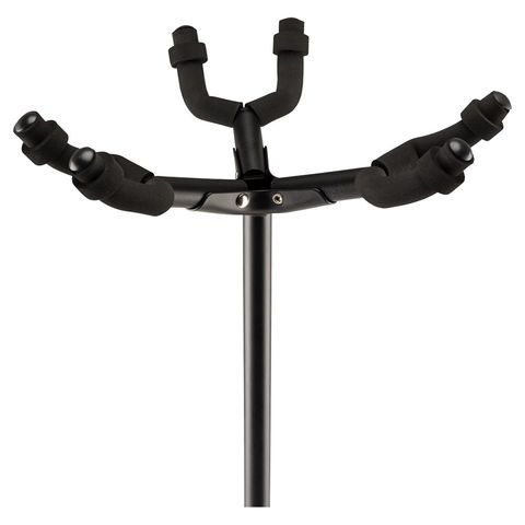 このスタンドは金属製で耐久性に優れ、パッド付きネックホルダーが楽器を安全に固定します。