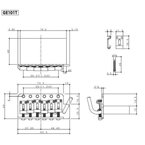 ゴトー GOTOH GE101T-GG ギター用トレモロユニット ゴールド 6点止め