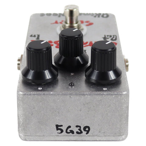これは過去のヴィンテージ・ファズをモチーフにしただけでは無く、歴史に残る名器のサウンドを踏まえつつも一から回路設計した、ゲルマニウムトランジスタを3石搭載した全く新しいタイプのファズです。従来のブリティッシュタイプのファズは美味しいポイントを探すのが困難な物も多く、また単に激しく荒々しいコントロール設定で演奏してみても実際にバンドアンサンブルの中では全く聴こえず、実用的な音作りにはなっていない場合がありました。
