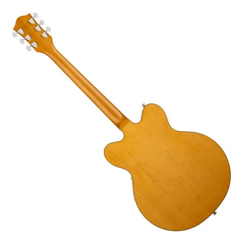 G2622 Center Blockは、アーチドメイプルボディに、新しいセンターブロックデザインを採用しています。この新しいセンターブロックは、軽量で快適な演奏性と存在感のあるフルでリッチなサウンドを両立するように設計されており、アタックとサスティンを向上させ、優れたフィードバック抑制効果を、重さを感じさせない快適なギターにまとめ上げています。