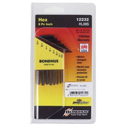 BONDHUS ボンダス HLX8S 12232 Hex End L-Wrenches Short 六角L-レンチ ショート 6角レンチ インチ