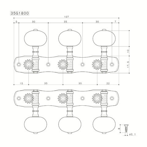 ゴトー GOTOH 35G1800-1W-Solid Brass クラシックギター用ペグ