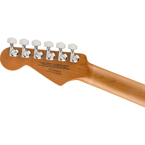 ボルトオン式のキャラメライズドメイプルスピードネックは、ヒールマウントに備えられたトラスロッド調整ホイール、蓄光式Luminlayサイドドット、グラファイト補強ロッドを備え、手作業で丁寧に仕上げられたウレタンバックフィニッシュはシルキーで滑らかな弾き心地を提供します。そしてこのネックには、24本のジャンボフレットとパーロイドドットインレイ、Graph Tech TUSQ XLナットを採用し、丁寧にエッジのロールオフ処理が施された12~16インチコンパウンドラジアスエボニー指板が組み合わされています。