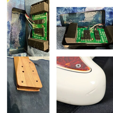 パテントナンバー入りデカール、エイジドボタン糸巻、 USポッド&ノブ、ピックガード、グレイファイバーボトム・アルニコマグネット・ポールピース・ピックアップ、トレモロベースプレー トなど可能な限り再現した65バージョンのMG-65です。