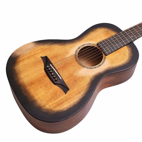 短めの弦長で低音側のコードやベースノートが押さえやすく、演奏時に手がナットに干渉しない独自形状の “Comfy”ボーンナットを採用し、快適に演奏できます。軽量・コンパクト設計で、旅先やアウトドアでも活躍。スプルース・トップとマホガニー・サイド/バックのオール単板が生む豊かな鳴りに、レトロ・ヴィンテージ・サンバーストの風合いをプラスしました。