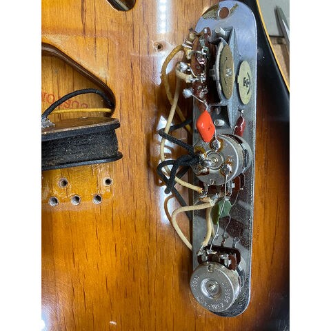 付属の説明書(英語)にも記載がある通り、6wayのブリッジとビンテージサーキットから、現代の通常サーキットに変更できるキット(ポット、コンデンサ)が付属しています。