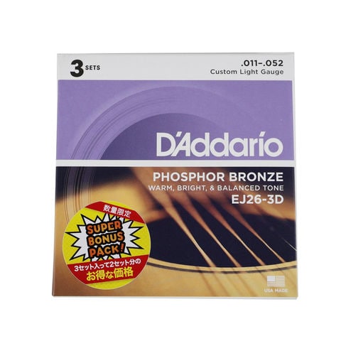 【3セットパック】 D'Addario EJ26-3DBP 11-52 Custom Light アコースティックギター弦 3セット入りパック カスタムライトゲージ フォスファーブロンズ
