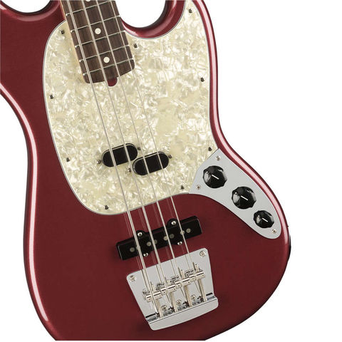 またAmerican Performer Mustang Bassはトーンを絞った際に低域も同時に適量アッテネートするGreasebucketトーンサーキットを搭載し、音の濁りを防ぎます。9.5インチラジアス指板のModern Cシェイプネックには19本のミディアムジャンボフレットを装備し、快適なプレイアビリティで表現力に溢れたパフォーマンスをサポートします。