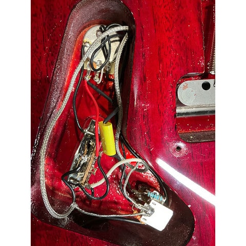 コントロールは3WAYスイッチ、マスターVOL、マスターTONE。TONEポットが本来Push-Pullで両ピックアップのタップになっていますが、搭載されたピックアップが2芯構造のため現在はPush-Pull回線は生きていません(Pullしても音色の変化なし)。ポットはPush-Pullポットのままです。