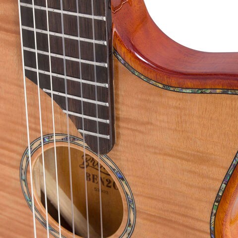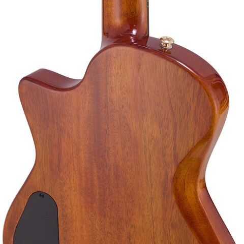 5Aフレイムオクメベニアとスプルーストップの組み合わせ、さらに軽量化を実現したマホガニーフルホロウボディが生み出す豊かな共鳴は、音楽的な表現を一層広げます。独自開発の「トーンフローブレーシング」は、バランスの取れた美しい音色を実現し、ピエゾピックアップとトランスデューサーを組み合わせたハイブリッドピックアップシステムによって、幅広い音作りが可能となります。どのような音楽ジャンルにも対応できる理想的なモデルです。