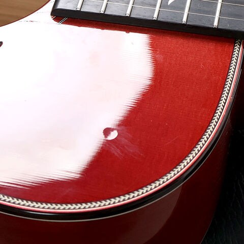 1弦側ショルダー部に米粒大の浅めの打痕あり。