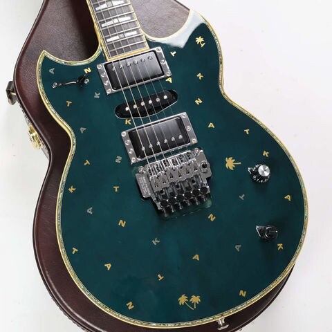 高中氏のシンボルとも言えるYAMAHA SGにTAKANAKAのアルファベットとヤシの木の装飾をあしらったボディートップ、シースルーでトップの木目がうっすらと見えるカラーリングなど一目でわかるアイコンと呼べる1本。