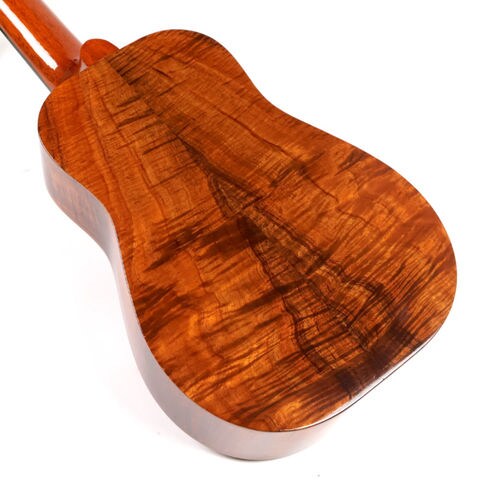 トップはシダー材、バック&サイドは見事な木目のハワイアンコア材を使用しています。ヘッド突板にも素晴らしいトラ目のコア材を使用。