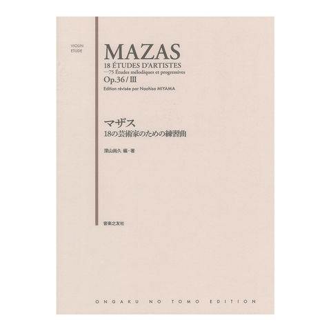 欧米では定番となっているマザスのヴァイオリン・エチュード最終巻(全3巻)。第1巻「30の特別なエチュード」、第2巻「27の華麗な練習曲」に続いて、第3巻は「18の芸術家のための練習曲」となっており、プロやハイ・アマチュアのヴァイオリン奏者向けでかなりレヴェルは高いが、楽曲としての華やかさが増し、単なるエチュードにとどまらない魅力もさらに増している。