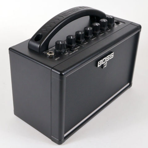 BOSSのKATANAアンプ・シリーズは、フラッグシップ・モデルWAZA AMPのエッセンスを取り込み、クラスを超えたサウンドや本格的なチューブ・レスポンス、充実したエフェクトでギタリストからの高い評価を集めるロック・アンプです。KATANA-MINIは、その上位クラスの本格的なサウンドをポータブル・サイズに凝縮したバッテリー駆動アンプです。本格的なステージ・クラスのアンプと同じように、段階的にゲイン・アップしていきダイナミックで表現力豊かな歪みを生み出すアナログ・ゲイン回路と、単純なEQではなくビンテージ・アンプの回路と同じ3バンド・トーンスタック、温かみのある残響音が特徴のディレイを搭載しており、クラスを超えた音作りと弾く楽しさが味わえるミニ・アンプです。気軽に持ち出せる小型・軽量ボディーとバッテリー駆動の実現により、さまざまなシチュエーションで本格的なロック・サウンドを楽しむことができます。