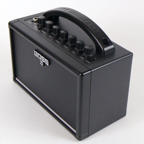 BOSSのKATANAアンプ・シリーズは、フラッグシップ・モデルWAZA AMPのエッセンスを取り込み、クラスを超えたサウンドや本格的なチューブ・レスポンス、充実したエフェクトでギタリストからの高い評価を集めるロック・アンプです。KATANA-MINIは、その上位クラスの本格的なサウンドをポータブル・サイズに凝縮したバッテリー駆動アンプです。本格的なステージ・クラスのアンプと同じように、段階的にゲイン・アップしていきダイナミックで表現力豊かな歪みを生み出すアナログ・ゲイン回路と、単純なEQではなくビンテージ・アンプの回路と同じ3バンド・トーンスタック、温かみのある残響音が特徴のディレイを搭載しており、クラスを超えた音作りと弾く楽しさが味わえるミニ・アンプです。気軽に持ち出せる小型・軽量ボディーとバッテリー駆動の実現により、さまざまなシチュエーションで本格的なロック・サウンドを楽しむことができます。