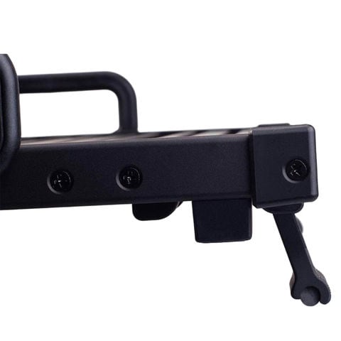 溝にTナットを差し込み、固定ブロックでペダルの側面を押さえてネジ留めするだけのシンプル構造です。面ファスナーの貼り替えや糊残りがなく、レイアウト変更も短時間で完了。サイズや形が異なるペダルも均一の力で固定でき、ガタつきやズレを抑えます。現場での急な入れ替えや、スタジオと自宅での機材入替にも柔軟に対応します。