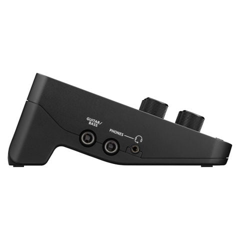 入力端子は、XLRマイク入力(2系統)、ギター/ベース入力、LINE入力、AUX入力、ヘッドセットマイク入力、TRS MIDI入力、USB入力を搭載。出力端子は、ヘッドフォン出力、LINE出力、TRSMIDI出力(THRU)、USB出力を搭載。楽曲制作でもパフォーマンス動画配信でも多彩な用途に対応できます。