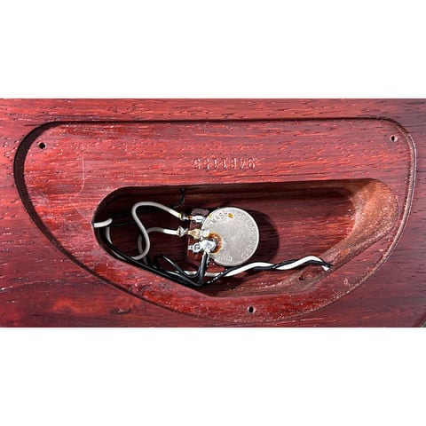 当初はアルダーボディー、メイプルネックという基本構成でしたが、本機N4 Padaukは、高級家具などに用いられるパドゥク材を使用したボディー、さらにネックという斬新な材選択が特徴です。材加工時の木材粉末の健康への影響を考慮され短期間で生産が中止されたこともあり、個体数が少なく中古としても希少な1本です。