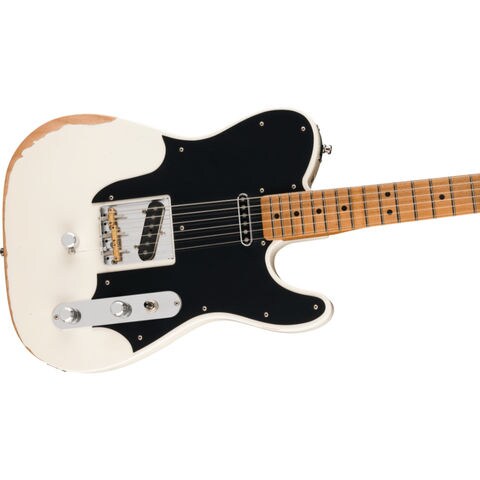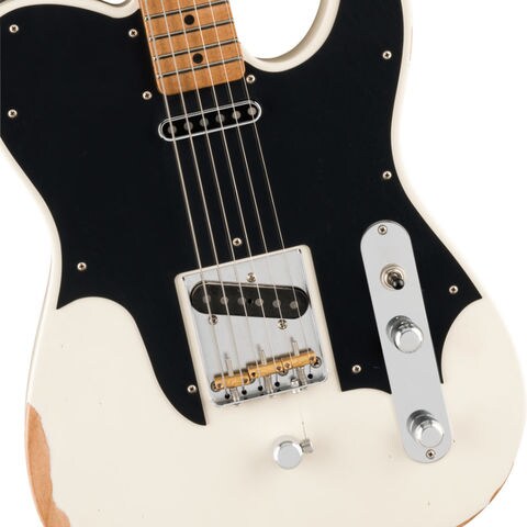 Road Wornオリンピックホワイトフィニッシュは、長年ステージで愛用されてきたギター特有の風合いとキャラクターを再現します。カスタムヴォイシングを施したJohn Osborne Telecasterピックアップ、カスタムピックガード、3つのコンペンセイテッドブラスバレルサドルにより、煌めくクリーントーンから力強いオーバードライブまで、幅広いサウンドを奏でます。