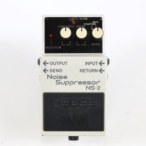 従来の方式では、ノイズは除去できても原音のアタックまで消えたり、エンベロープが不自然になるなどの弊害が残りましたが、NS-2はギターの音とノイズ成分を分離して検知するBOSS独自の方法を採用。原音には一切影響を与えずにノイズやハムだけを一掃する事が可能。他のコンパクトへの電源供給も可能。