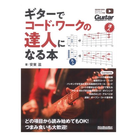 さまざまなコードを意のままに操ることは、ジャンルを問わずうまいギタリストになるために絶対に必要なスキルである。無数のコードからボキャブラリーを増やし、場面場面に応じた的確なコード・ワークをするにはどうしたらいいか。この1冊を読めばOK。『ギター・マガジン』のライター陣でも教え方に定評のある安東滋が同誌で執筆したコード系特集の中から、特に反響の大きかった6つの記事を厳選。リハーサルや本番で実用的に使えるコード・ワークを多彩なアプローチで伝授する。記事に対応した音源をダウンロード&ストリーミングで聴ける。