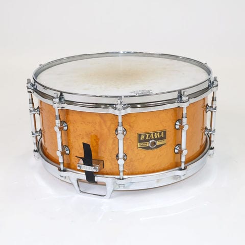 個体の特徴から1989年のTAMAカタログに掲載されていた「TAMA BE346 BIRD'S EYE ALL MAPLE SNARE DRUMS」と思われます。