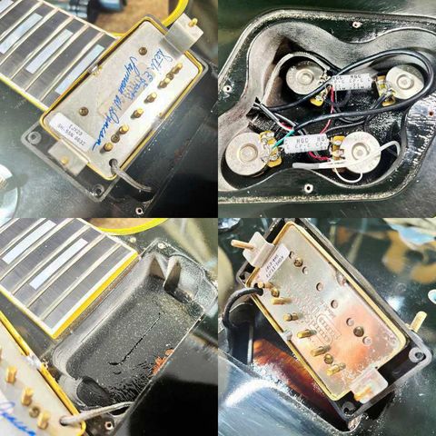ピックアップはオリジナルは両方Seymour Duncan SH-55(Seth Lover)ですが、リアピックアップのみSeymour Duncan SH-4(JB)に交換されています。また、ポット、コンデンサー類も交換されているようです。