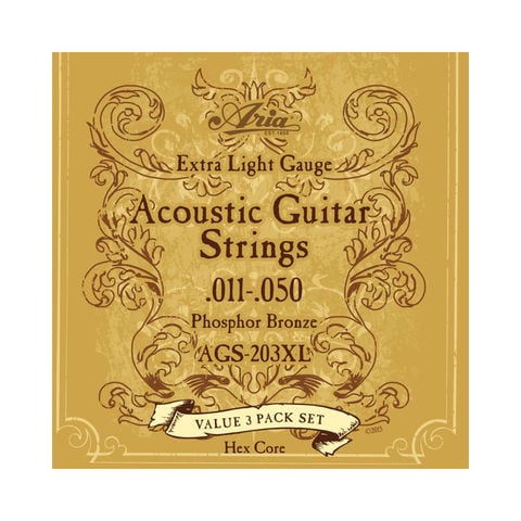 アリアのアコースティックギター弦「AGS-203XL」が3セット入ったパックです。