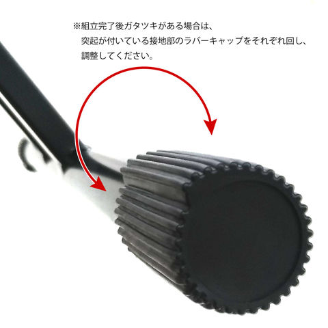 ※組立完了後ガタツキがある場合、突起が付いている接地部のラバーキャップをそれぞれ回し、調整してください。