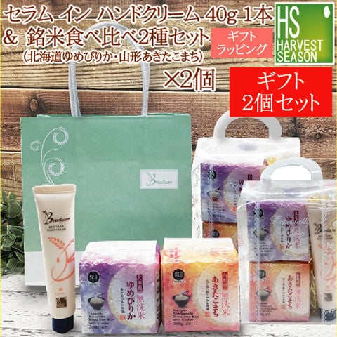 【ギフト2個セット】ライスブラン セラムイン ハンドクリーム 40g×1本 + 無洗米銘米食べ比べ 2種 (令和7年産 北海道ゆめぴりか&山形あきたこまち)