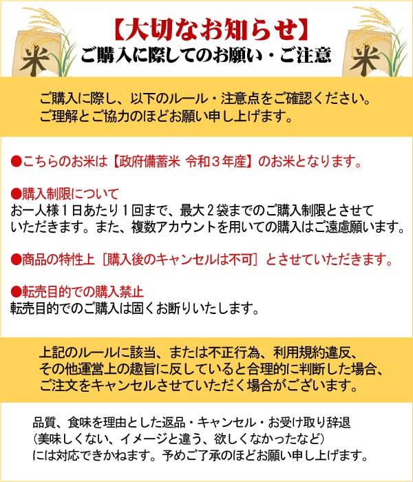 ■こちらのお米は複数原料米(国内産 10割)政府備蓄米 令和3年産米です。