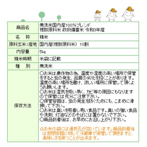 [予約販売 8月中旬~8月末到着]政府備蓄米 令和3年産 2021年産 複数原料米 家計応援米 無洗米 国内産100%ブレンド5kg 予約販売 原料玄米メッシュチェック(カビチェック)済 [おひとり様2袋まで][入荷次第順次お届け開始][北海道沖縄へのお届けは別途送料760円]