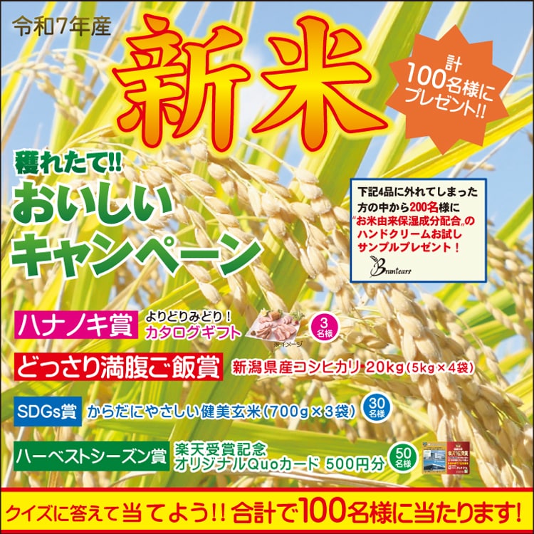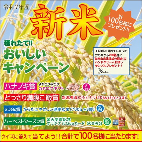 応募方法の詳細は、令和7年産 新米商品の米袋に貼付されているキャンペーンシールに記載しております。そちらをご確認の上、ご応募下さい。