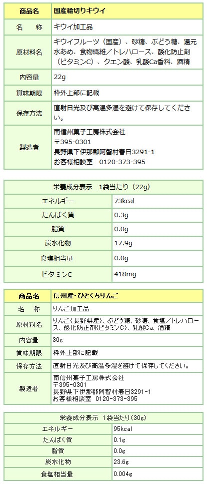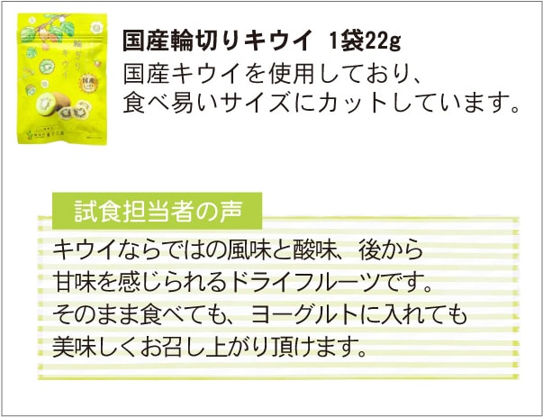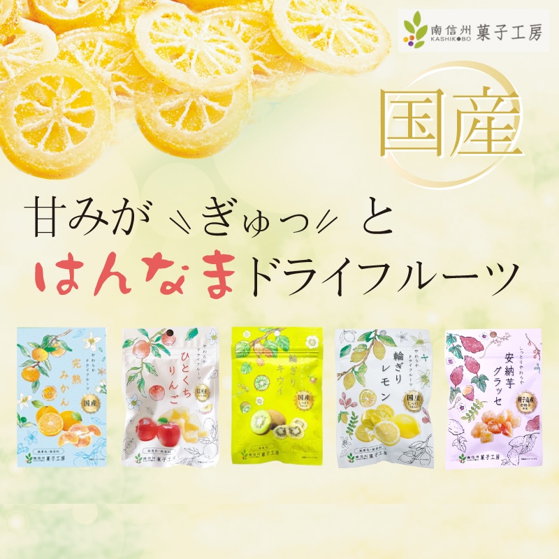 (国産)輪切りキウイ、(国産)みかん、(国産)安納芋、(国産)ひとくちリンゴ、(国産)輪切りレモン