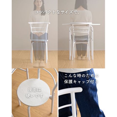 | 材質 | フレーム:スチール(粉体塗装) テーブル天板・チェア座部:合成樹脂化粧繊維板(塩化ビニル樹脂) |