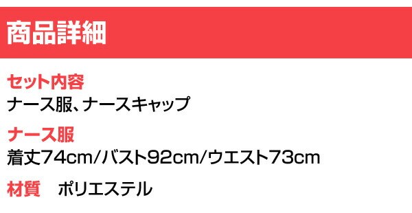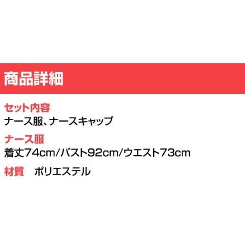 | 商品説明 | ●セット内容:ナース服、ナースキャップ ●人気イラストレーター西又葵さんがイラストを手掛ける |