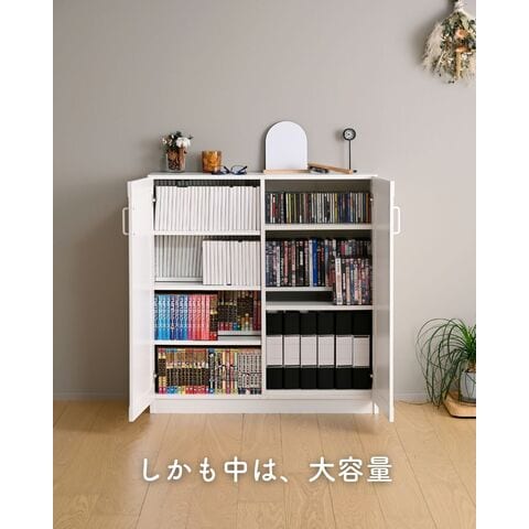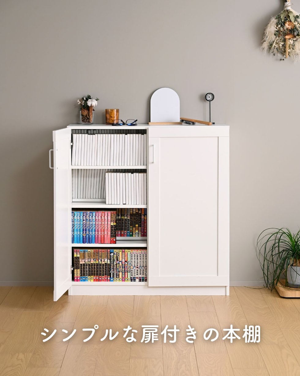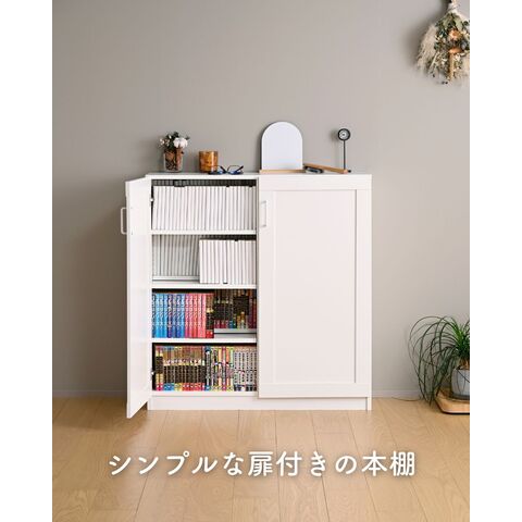本棚 扉付き 大容量 ロータイプ 幅90.5 奥行31 高さ96cm 大容量 棚 シェルフ 木製 漫画 コミック 収納 ラック カウンター下 推し 推し活 山善 YAMAZEN 【送料無料】